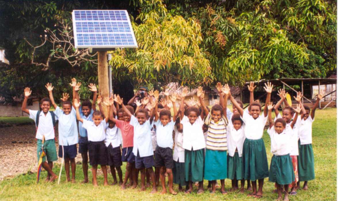 Renewable energy through solar panels, helping to reduce greenhouse gas emissions brings smiles in Vanuatu