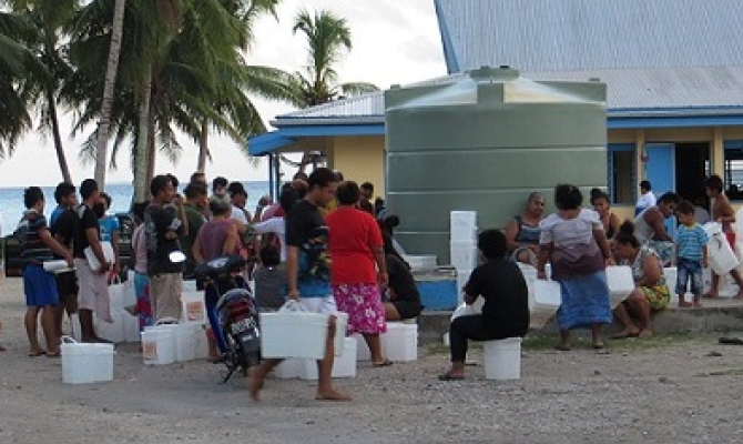 In Tuvalu, water shortages are common as the island is vulnerable to extreme weather events including long periods without enough precipitation.