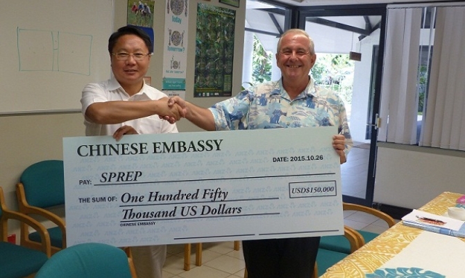 His Excellency, Mr. Wang Xuefeng, Chinese Ambassador to Samoa, delivered a cheque of USD 150,000 to the Secretariat of the Pacific Regional Environment Programme (SPREP) to assist delivery of the core areas of SPREP's mandate.