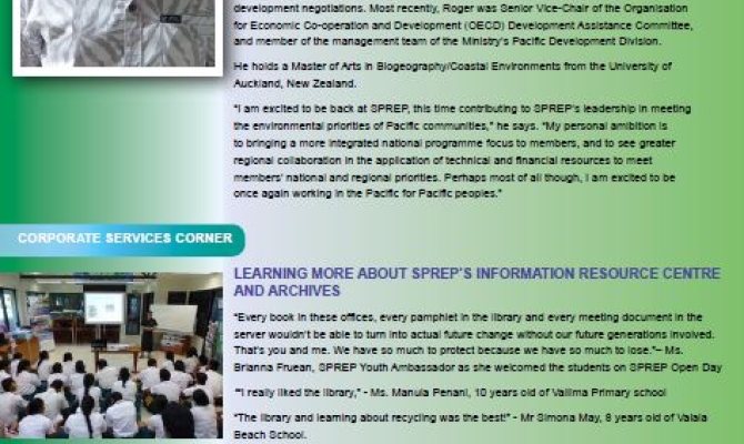 The monthly newsletter from the Secretariat of the Pacific Regional Environment Programme (SPREP) features updates of news and events happening in SPREP during the month of May.
