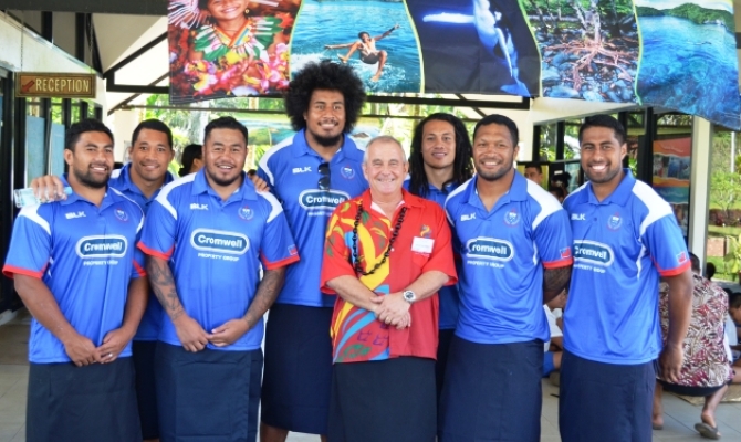 Mr. David Sheppard with members of the Manu Samoa Rugby Team - celebrating SPREP Day