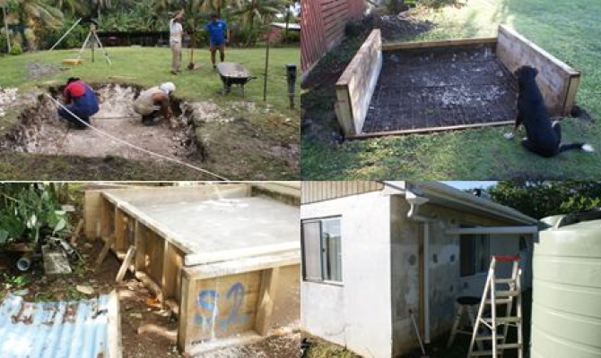 Installing a rainwater harvesting system at the national level. Photo: PACC Niue, 2014