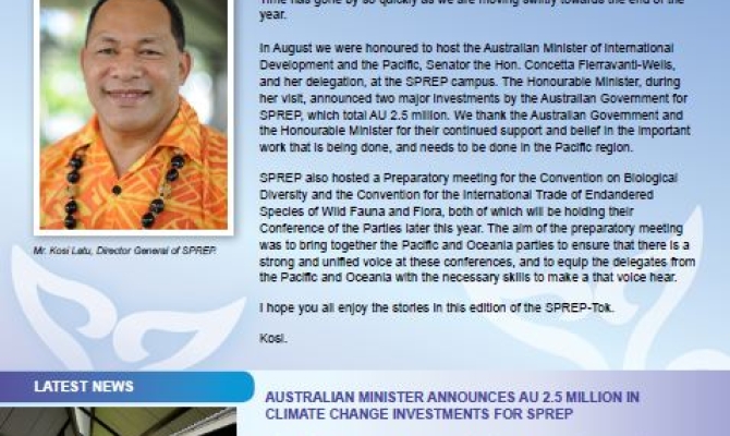 A wide range of news from the Secretariat of the Pacific Regional Environment Programme (SPREP) can be found in this issue of SPREP-Tok. We pay tribute to our fellow Pacific environment colleagues who have passed away and remember the great work they have done over the years.