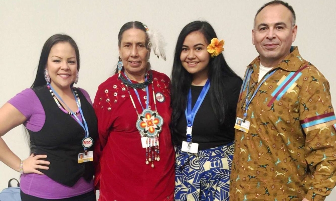 SPREP Youth Ambassador Brianna Fruean (second from left) at the UNFCCC COP21 in Paris.