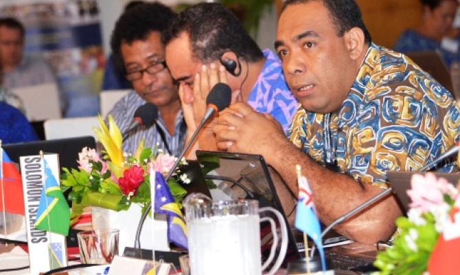 Solomon Islands takes the floor at the 26th SPREP Meeting in Samoa 2015. Photo: SPREP