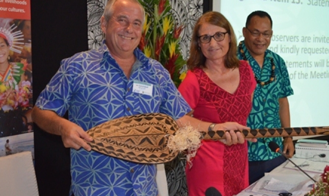 L - R Mr David Sheppard with his gift presented to him from the 26th SPREP Meeting of Officials,