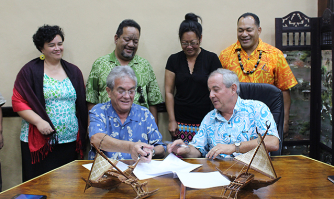 The Hon. Tonny de Brum and Mr David Sheppard at the signing of the Letter of Agreement in Majuro, Marshall Islands.