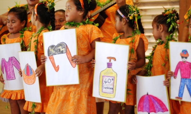 School children perform for participants at the 2011 Pacific Climate Change Roundtable hosted by the Government of Niue.