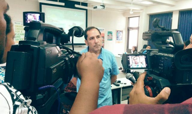 James Fahn interviewed by Samoa media - image courtesy of Lagipoiva Cherelle Jackson
